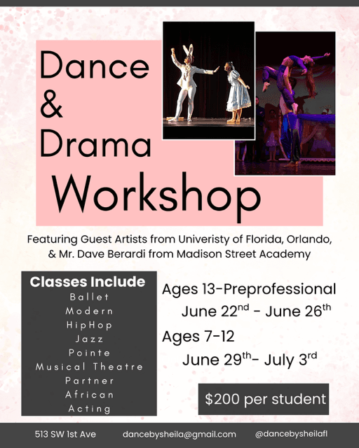Located in historical downtown Ocala, we are a dance studio that strives to make dance accessible and enjoyable for all ages. At Dance by Sheila, we aim to stay true to the foundational techniques of dance while honoring the creativity of the art form. We have offerings across several genres, including Ballet, Jazz, Hip-Hop, Tap, and many more!